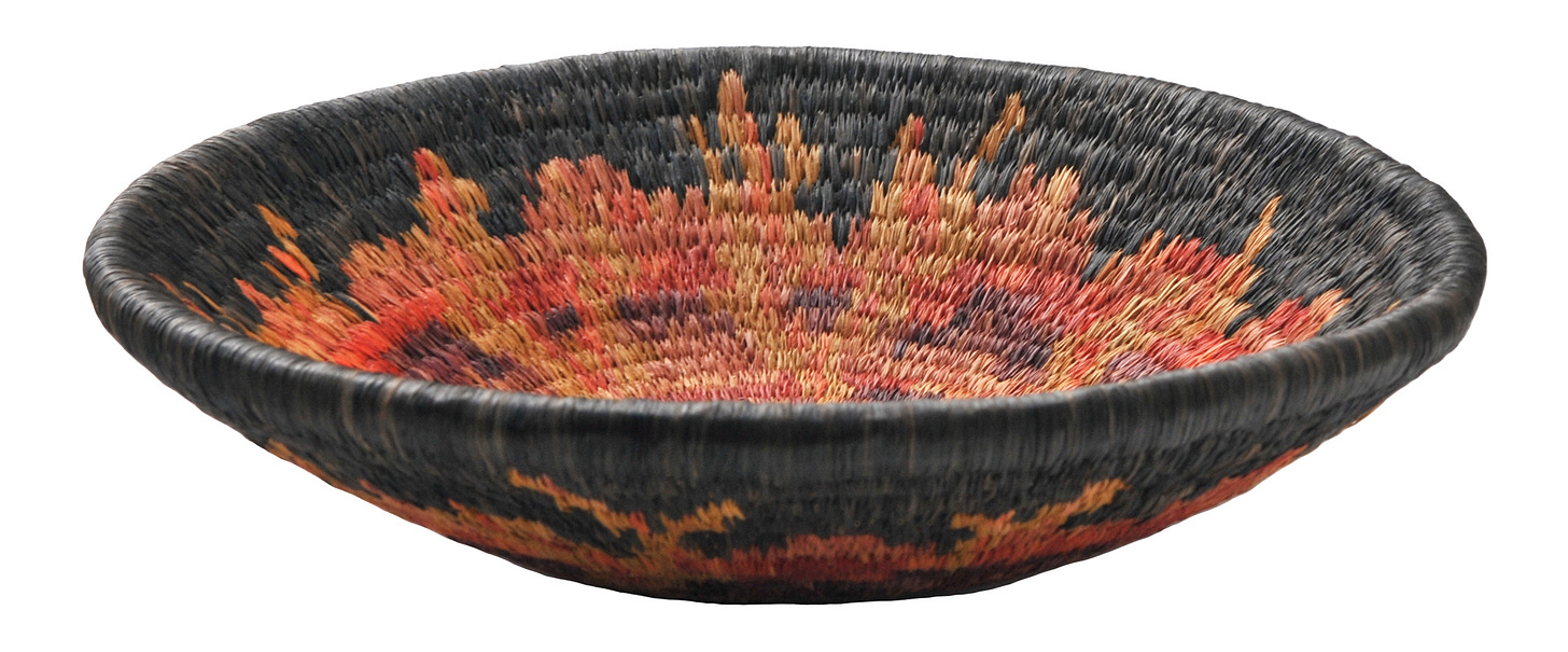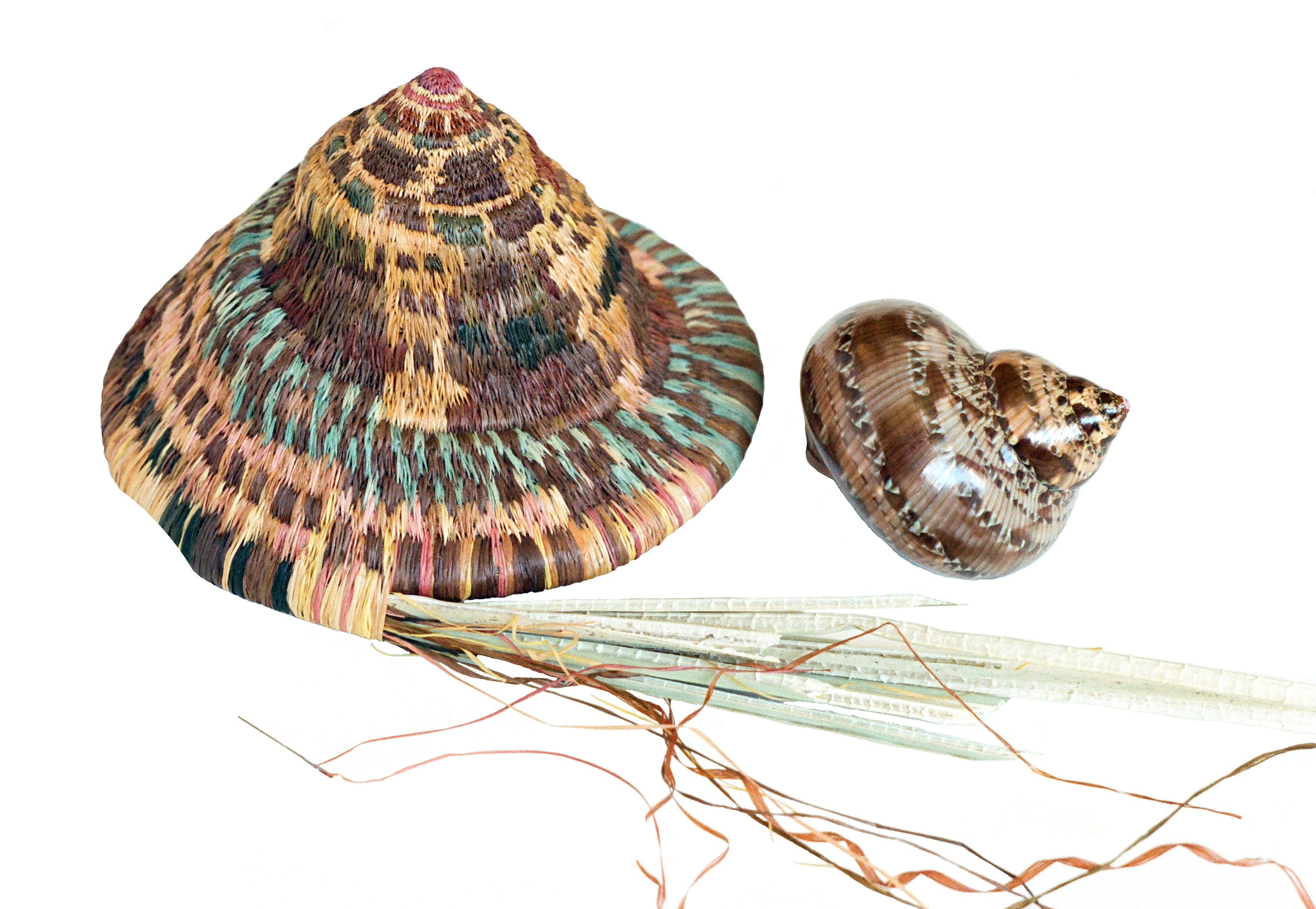 Pattern: Modelled directly on a turban tapestry shell, this basket remains, and may always remain, in process. The shell is a manifestation of the spiral, a basic form of movement of energy, and its shaping is the quintessential creation of beauty as a home environment.